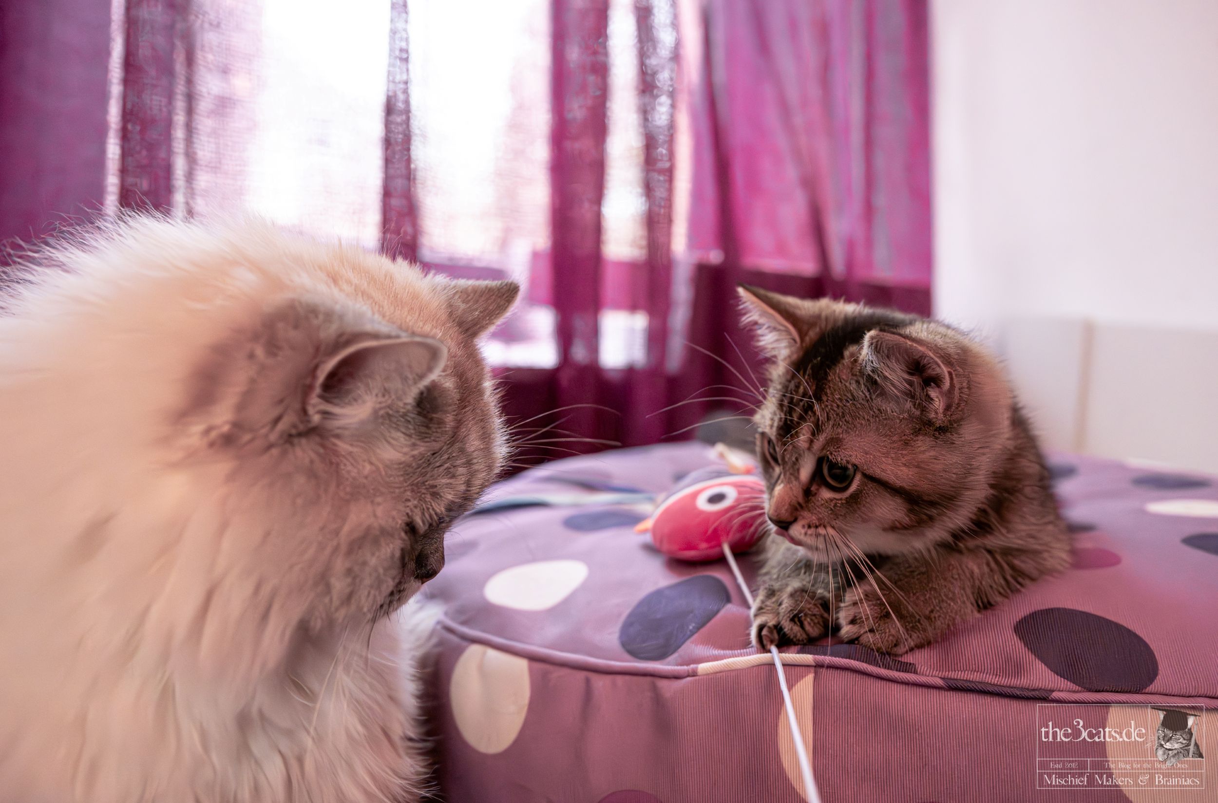 Insgesamt verstehen wir uns hier aber alle dufte. Frauchen schüttelt zwar immer den Kopf („Auch das habt ihr von den beiden Superkatern gelernt.“), aber wir wollen ja nur spielen. *schwör